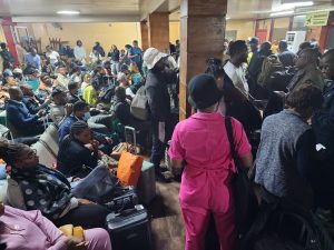 Our flight from Paris to Cameroon stopped at Central African Republic along the way. This was only supposed to be a brief stop. But then the pilot announced that we had paperwork issues. Then the plane had some mechanical problems. Finally, they asked us all to disembark and crowded us into a little lobby for the entire night. [Figure 6] We slept as best we could on the floor and on metal benches. 14 hours later we were again on our way to Yaounde Cameroon! I had built a couple of extra days into our itinerary, knowing from my prior expeditions how things can get bogged down in a third world country. But even that wasn’t enough. Our planned 13 days on the river soon had to be abbreviated by a few days.