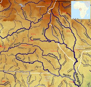 By the 1990s, expeditions into the Congo basin largely ended because civil unrest made travel dangerous. But in 2000 Bill Gibbons and I learned from pioneer missionaries that the Baka pygmy peoples in southeast Cameroon also knew of this dinosaurian animal. The creature was said to inhabit the remote rivers and larger jungle pools. It makes sense that a population of river-dwelling animals would be dispersed throughout this multi-national region since the rivers are all connected, forming a single drainage basin. [Figure 1] The key rivers in southeastern Cameroon are the Dja and the Boumba. These merge and become the Ngoko River, which then flows into the Sangha. The Sangha River forms the eastern border of Cameroon, separating it from Central African Republic. Eventually, the Sangha River flows south into The Republic of the Congo.