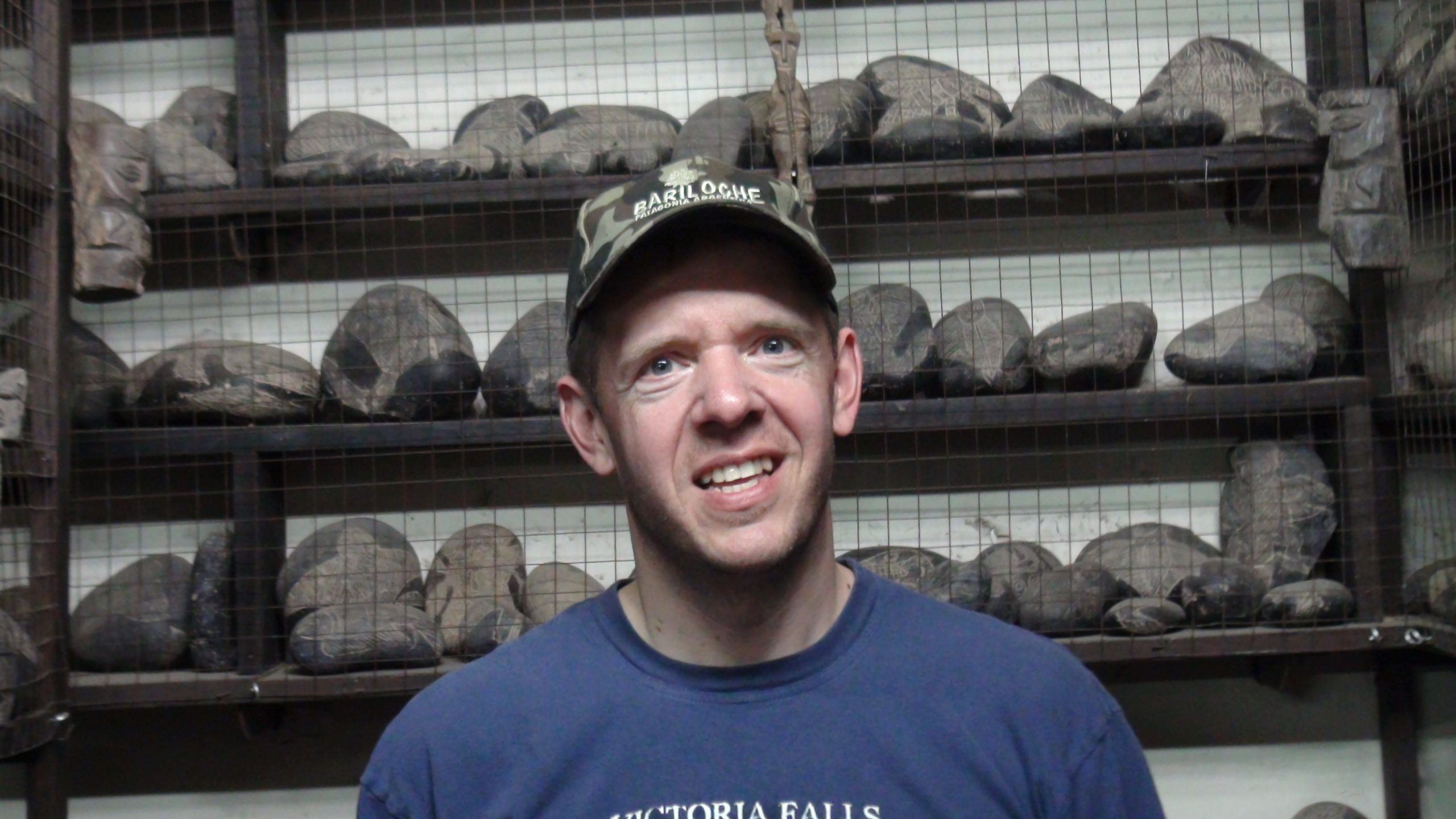 Over the course of the last two decades I (Swift) have traveled numerous times to southern Peru, building up relationships with Cabrera, various museum officials, archaeologists and Huaqueros. On one trip Cabrera gave me a couple of his Ica Stones that had dinosaurs engraved upon them. I have personally visited the desert tomb sites on a number of occasions. Once while a group of us were walking over a gray desert hill that was a burial mound, we came upon some previously unknown tombs that had only recently collapsed and there, to my surprise, I discovered an engraved stone in situ, embedded in the side of the tomb. I filmed this with a camcorder. That particular stone was decorated with some non-descript geometric shapes.