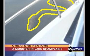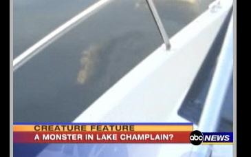Featured on the TV program Unsolved Mysteries, Champ has been amateur video-taped several times (see picture above). On February 22, 2006 ABC News obtained an exclusive video of something just under the surface of the lake that some say may be Champ. The video, including humps and what appears to be a long slender neck and monster head (above), was taken by two fishermen with their digital camera. Before their supposed sighting, they were Champ skeptics. ABC News has since removed the original video from their website and replaced it with an unrelated, low quality video of Lake Champlain, but it can still be seen on this YouTube video. Many people believe Champ to be a living plesiosaur.
