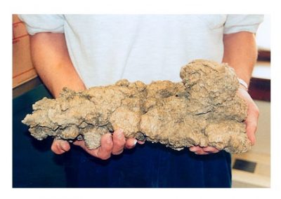 Fossilized scat is particularly interesting to modern cryptozoologists who hunt for possible living dinosaurian species. Droppings and footprints are often discovered and analyzed long before an elusive creature is photographed or captured. By comparing footprints and droppings found in a cryptid hotspot against trace fossils, a researcher can determine if they are on the right track towards finding a possible living pterosaur. While pterosaur coprolite is rare, many pieces of mineralized dinosaur droppings have been found, some weighing up to hundreds of pounds. It seems that the pressure involved in a burial under watery sediments, along with the relaxation of bowel muscles quite often resulted in defecation at death.