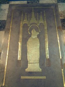 In 1496 the Bishop of Carlisle, Richard Bell, was buried in Carlisle Cathedral in far northern England, near the Scottish border. The tomb cover (left) is inlaid with brass, having various animals engraved upon it. Although worn by the countless feet that walked over it since the Middle Ages, a particular depiction is intriguing in its similarity to a sauropod dinosaur. It appears to be two long-necked dinosaurs with necks entangled like the Egyptian Hierakonpolis dragon depictions mentioned above (perhaps an amorous posture). The long tails stick out straight like an Apatosaurus and one (maybe the male) sports spikes at the end. Spikes on sauropods was unknown until fairly recently. In 1989 paleontologists realized that Shunosaurus had a club with four backwards-facing spikes at the end of its tail. In 2009 the long-necked Spinophorosaurus was discovered to have spikes like those seen on the Carlisle Cathedral dinosaur. Amongst the birds, dog, eel, bat, fox, etc. depicted around the tomb, this compelling representation of two long-necked creatures should be considered evidence that man and dinosaurs co-existed.
