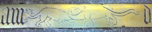 In 1496 the Bishop of Carlisle, Richard Bell, was buried in Carlisle Cathedral in far northern England, near the Scottish border. The tomb cover (left) is inlaid with brass, having various animals engraved upon it. Although worn by the countless feet that walked over it since the Middle Ages, a particular depiction is intriguing in its similarity to a sauropod dinosaur. It appears to be two long-necked dinosaurs with necks entangled like the Egyptian Hierakonpolis dragon depictions mentioned above (perhaps an amorous posture). The long tails stick out straight like an Apatosaurus and one (maybe the male) sports spikes at the end. Spikes on sauropods was unknown until fairly recently. In 1989 paleontologists realized that Shunosaurus had a club with four backwards-facing spikes at the end of its tail. In 2009 the long-necked Spinophorosaurus was discovered to have spikes like those seen on the Carlisle Cathedral dinosaur. Amongst the birds, dog, eel, bat, fox, etc. depicted around the tomb, this compelling representation of two long-necked creatures should be considered evidence that man and dinosaurs co-existed.