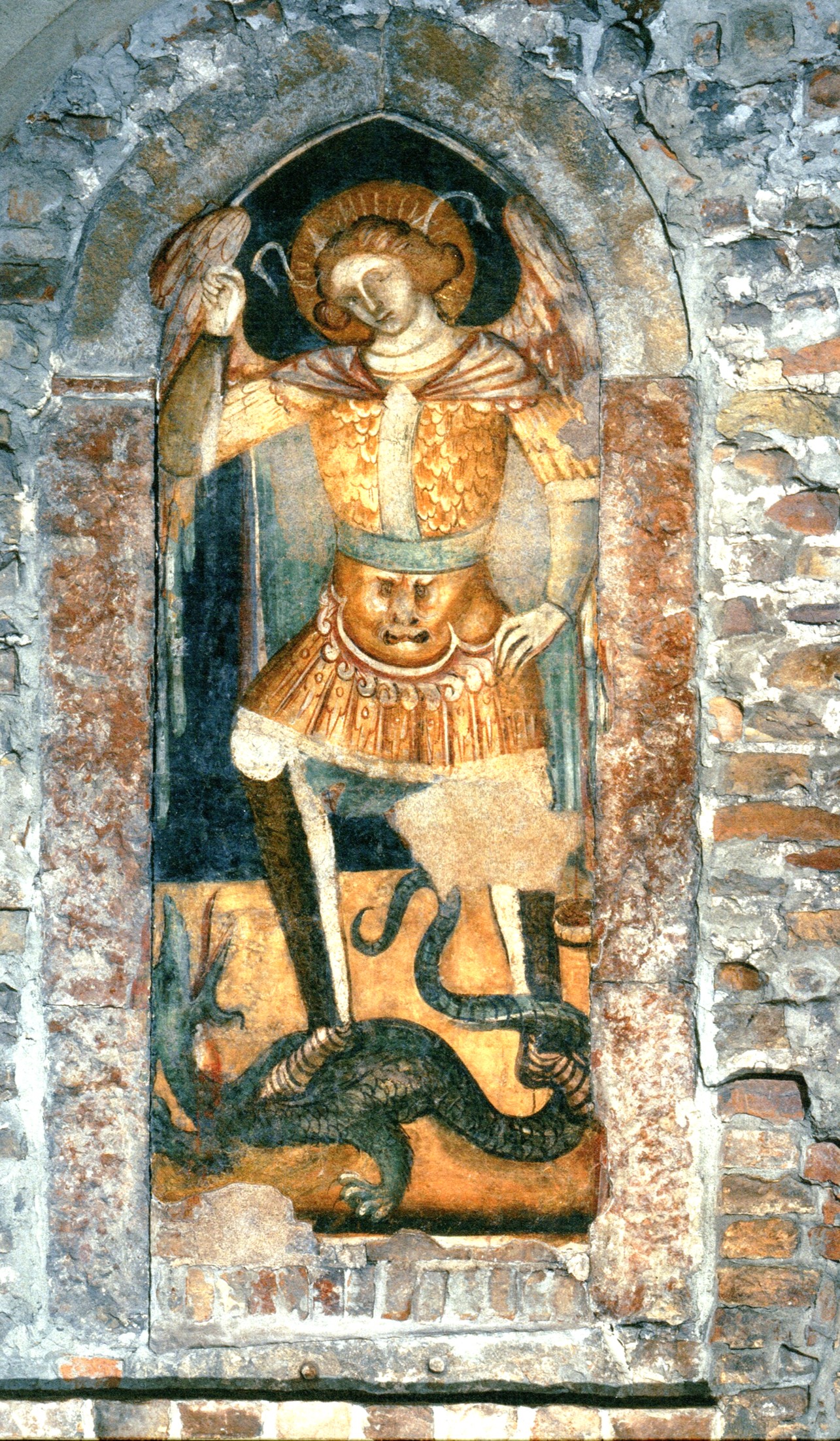 Medieval European art is replete with dragon iconography, much of it used to typify Satanic power (Revelation 12:3). A wonderfully-preserved fresco depicting the archangel Michael overcoming the dragon is displayed at San Zan Degolà, a beautiful little 13th century church in Venice, Italy. The dragon’s proportions and especially its diminutive front legs bring to mind the small theropod dinosaurs like Compsognathus.