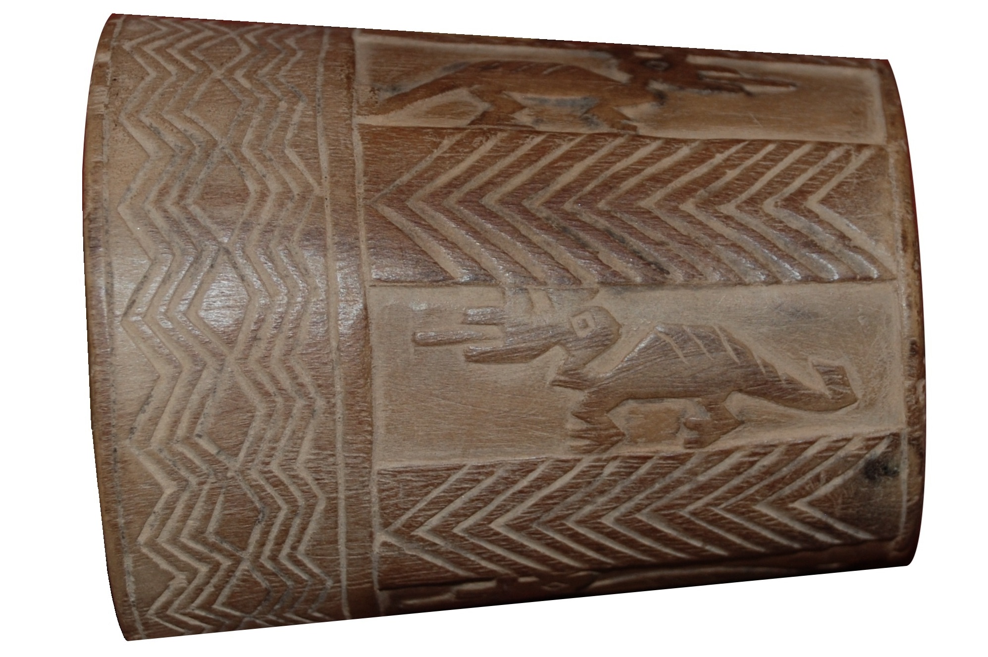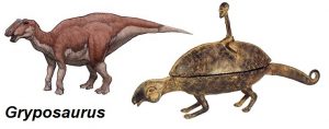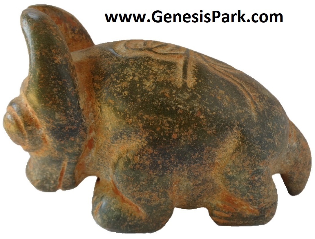 Another African tribe from the Mali region, the Dogons, produced a dinosaurian object in the mid-1800s. Our friends at the s8int website note that this is the same time frame when Sir Richard Owen coined the term “dinosaur” in England. How could the tribal Dogon people know what dinosaurs looked like? The bronze artifact shows someone riding on this long-necked, long-tailed reptilian creature. The oddly bird-like head with strong jawline and ridged head and neck are reminiscent of certain “duck-billed” ornithopod dinosaurs like the hadrosaur Gryposaurus. The diamond-shaped pattern on the skin matches fossilized skin impressions discovered on a hadrosaur in southern Utah. The Dogon rider and the large-nosed Gryposaurus are modeled roughly in correct proportion.