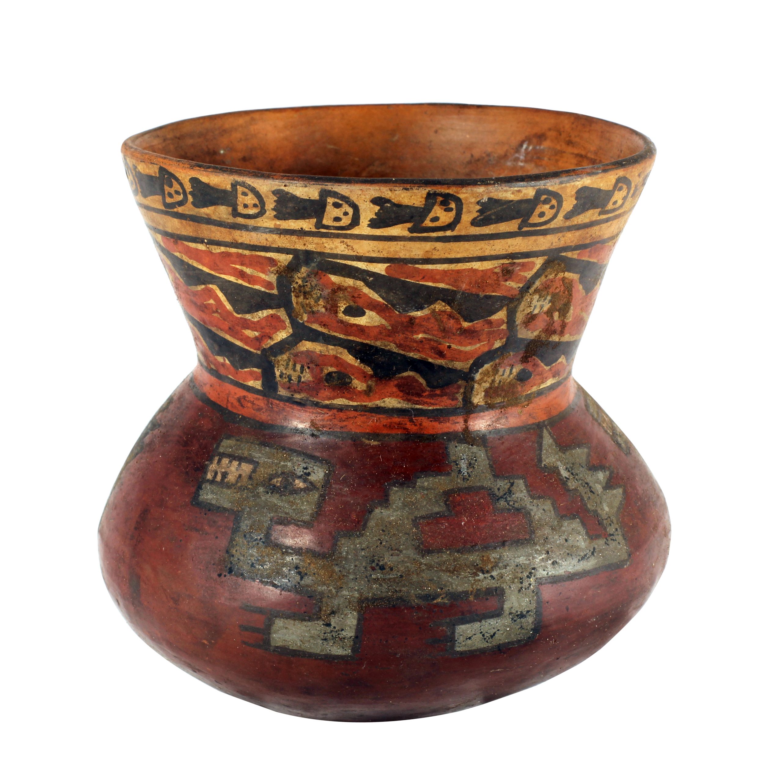 Above are pictured some of the famous Ica Ceremonial Burial Stones from the Nasca culture (100 BC to 800AD). These are carved in a bas relief technique. In the 1500s the Spanish Conquistadors brought back stories that there were stones with strange creatures carved on them found in Peru. Some of the stones were even brought back to Spain. The Incan Chronicler Juan de Santa Cruz Pachucuti Lumqui wrote in 1571 about the strange engraved stones in Ica. (See Swift, Dennis, Secrets of the Ica Stones, 2006.) Dom Geronomo Cabrera was a Spanish conquistador who settled the area of Ica in 1570. One of his descendants, Dr. Javier Cabrera, saw these stones as a child and began collecting them in the 1960s. He eventually accumulated thousands of stones, many displaying dinosaurian figures. The scientific community was very skeptical. And it does seem that some of these stones are modern productions made by enterprising Peruvians. But otherer stones, like the Rio Grande Stone, were found in situ by professional archaeologists excavating the ancient tombs. The validity of dinosaurian engravings has been strengthened by the discovery of ancient ceramics and fabrics (see below) that display long-necked, reptilian creatures. These items are currently displayed in leading museums of Lima.