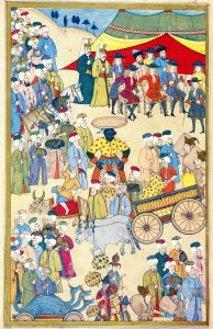Although the Ottoman Empire ruled for over six centuries, there are not many depictions of dinosaurian creatures in their artwork (as compared to Medieval European art). Perhaps dragons were not as common in the eastern European/Middle East theater at that time. The Turkish painting to the left, entitled “Procession of the Trade Corporation during the Festival of 1720 in Constantinople” is in a surname (or historical album) called The Surname-I Hümayun archived at Topkapi Museum of Istanbul. It was written and illustrated under the direction of Abdulcelil Levni (aka Abdulcelil Çelebi) who was the official Ottoman court painter till he died in 1732. The picture shows the guildsmen, followed by clowns and what seems to be a mechanical three-headed dragon. (Bottom left is the bluish dragon.) Note the similarity to a baby sauropod dinosaur. A sauropod with multiple heads, a condition known as polycephaly. While curious, is quite common among dragon reports and even known among reptiles today. In fact, the Bible mentions a multi-headed dragon in Psalm 74:14 in what seems to be a historical event. Also Revelation 12:3 metaphorically mentions a dragon with seven heads.