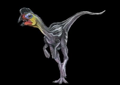 It displays numerous characteristics of the beaked dinosaurs (like the Oviraptor shown here for comparison): tridactyl foot configuration, metatarsal stance, scale-like patterns represented all over the body (except for the notable crest which has a striated pattern), a long (albeit slender) tail, an elaborate head crest a reptilian inner ear, and a long neck. It is noteworthy that a beautifully preserved duckbilled hadrosaur mummy (Edmontosaurus) was discovered in Alberta, Canada in 2013. The specimen sported a fleshy crest atop its head (like a rooster). Researchers theorized that the hat-like ornament was brightly colored to allow for identification. This was the first non-bony crest discovered on a dinosaur. It closely matches the look of the Chinese beaked dragon.