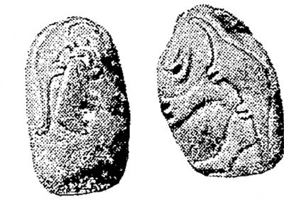 Another association of an American elephant and a dinosaurian depiction is presented in the Granby Idol. This queer rock relic was unearthed by W.L. Chalmers near Grand Lake, high in the Colorado Rockies. He found the 66 pound stone (along with various ancient utensils) several feet below the surface while enlarging an irrigation reservoir on his homestead. The stone was made of an exceedingly hard green material, like nothing ever known of in the neighborhood. (“Is Pre-Glacial Man Coming Back?” Hutchison News, January 5, 1923.) On one side is a carved man, holding a tablet containing symbols. On the back are carved a mastodon and two dinosaurs. (Courtesy of s8int.com.) According to The Le Grand Reporter in 1923, Jean Allard Jeancon, archaeologist and Curator of the Colorado Historical and Natural History Society, stated, “If this stone can be proven genuine, it is the biggest find in all anthropological research and antedates anything on the American continent and is going to establish the remote antiquity of man. I have never seen such remarkable outlines of dinosaurs and mastodons!” Unfortunately this priceless artifact appears to have been lost somewhere in the bowels of the museum system. (Murphy, Jan, Mysteries and Legends of Colorado: True Stories of the Unsolved and Unexplained, 2007.) If a school teacher named Lela Smith had not taken three photos of the Buddha-like stone, the knowledge of this relic would have been lost.