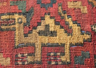 Beautiful ceramics and tapestries like those above have been found in the tombs of the Ica area (dated from 200 – 700 AD) with a repeating pattern that looks like dinosaurs. Indeed, the depictions on some of the Ica Stones show the sauropod dinosaurs with a crest of spines much like those on the Acambaro figures, and preserved skin remains discovered by Paleontologist Stephen Czerkas: “Recent discovery of fossilized sauropod (diplodocid) skin impressions reveals a significantly different appearance for these dinosaurs. The fossilized skin demonstrates that a median row of spines was present… Some are quite narrow, and others are broader and more conical.” (Czerkas, “New Look for Sauropod Dinosaurs,” Geology, December, 1992, p. 1,068.)