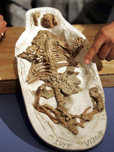 In 2005 researchers in China identified a small dinosaur known as Psittacosaurus amongst the stomach region of a fossilized furry mammal that resembled a Tasmanian devil. (Hu, Y. et al., “Large Mesozoic Mammals Fed on Young Dinosaurs,” Nature: 433, 2005, pp. 149-152.) To find such an advanced predatory mammal came as a surprise to these researchers. The evolutionists had long maintained that the only mammals alive at the time of the dinosaurs were very small, like the supposed human ancestor that resembled a squirrel!