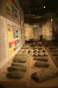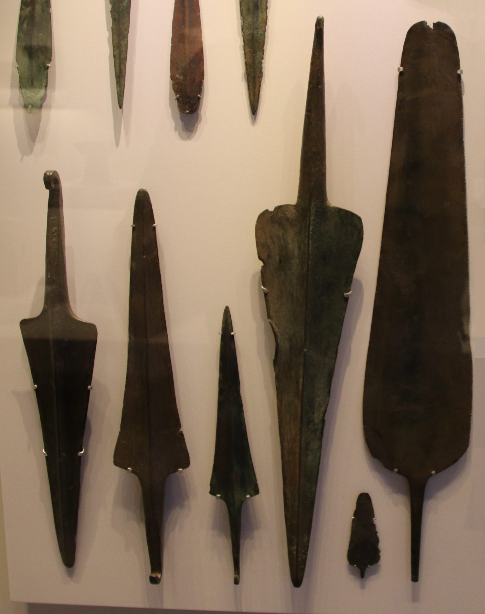 The Bible informs us that Goliath wielded a massive spear, “And the staff of his spear was like a weaver’s beam; and his spear’s head weighed six hundred shekels of iron:” (I Samuel 17:7). That’s over 15 pounds of metal at the end of the spear! A hoard of copper tools and weapons was discovered buried at Kfar Monash in Israel. The axe heads were identified as being identical to those found at Tell es-Safi (Gath). But the huge copper spear heads were the most striking. The archaeological report that published this find claimed the spears were too big to have been wielded and must have been used just for decoration! But the weapons show evidence of having been used, perhaps by one of Goliath’s giant relatives (II Samuel 21:16). These ancient tools are currently displayed at the Israel Museum (right).