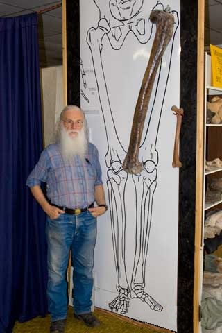 In the late 1950’s, during road construction in the Euphrates Valley of southeast Turkey, fossilized human remains were uncovered. At the site, an engineer measured a femur (the long leg bone) and reported in a newsletter that it measured to be 120 cm (47.24 in.). Joe Taylor, Director of Mt. Blanco Fossil Museum, was commissioned to sculpt the human femur. This giant would have stood about 14 ft tall (left). Perhaps this was a skeleton of one of the pre-flood Nephilim. Genesis 6:4 states: “There were giants in the earth in those days.” That was a time of giant organisms, a time when men lived for several centuries. But the Nephilim stood out amongst their peers even in those days. Moreover, it tells us that there were giants again after that time. We note in post-Flood times that Deuteronomy 2 discusses multiple races of giants: Emims, Horims and Zamzummims. Deuteronomy 3:11 tells about the bed of the Giant Og, King of Bashan. It was 9 cubits by 4 cubits (approximately 14 ft long by 6 ft wide). This giant, the last of the Rephaim clan, was probably about 12 ft tall! In Numbers 13:28-33 the Israelite spies investigated the land of Canaan in preparation for an invasion. They reported a race of giants that made them feel like mere grasshoppers. Their descendants entered the land and conquered these giants (the Anakim). The most popular Anakim giant was Goliath, who stood 10 ft tall (I Samuel 17:4). By contrast, Israel’s King Saul was described: “from his shoulders and upward he was higher than any of the people” (I Samuel 9:2). Yet he was not considered a giant. So, these Old testament giants were really big guys.