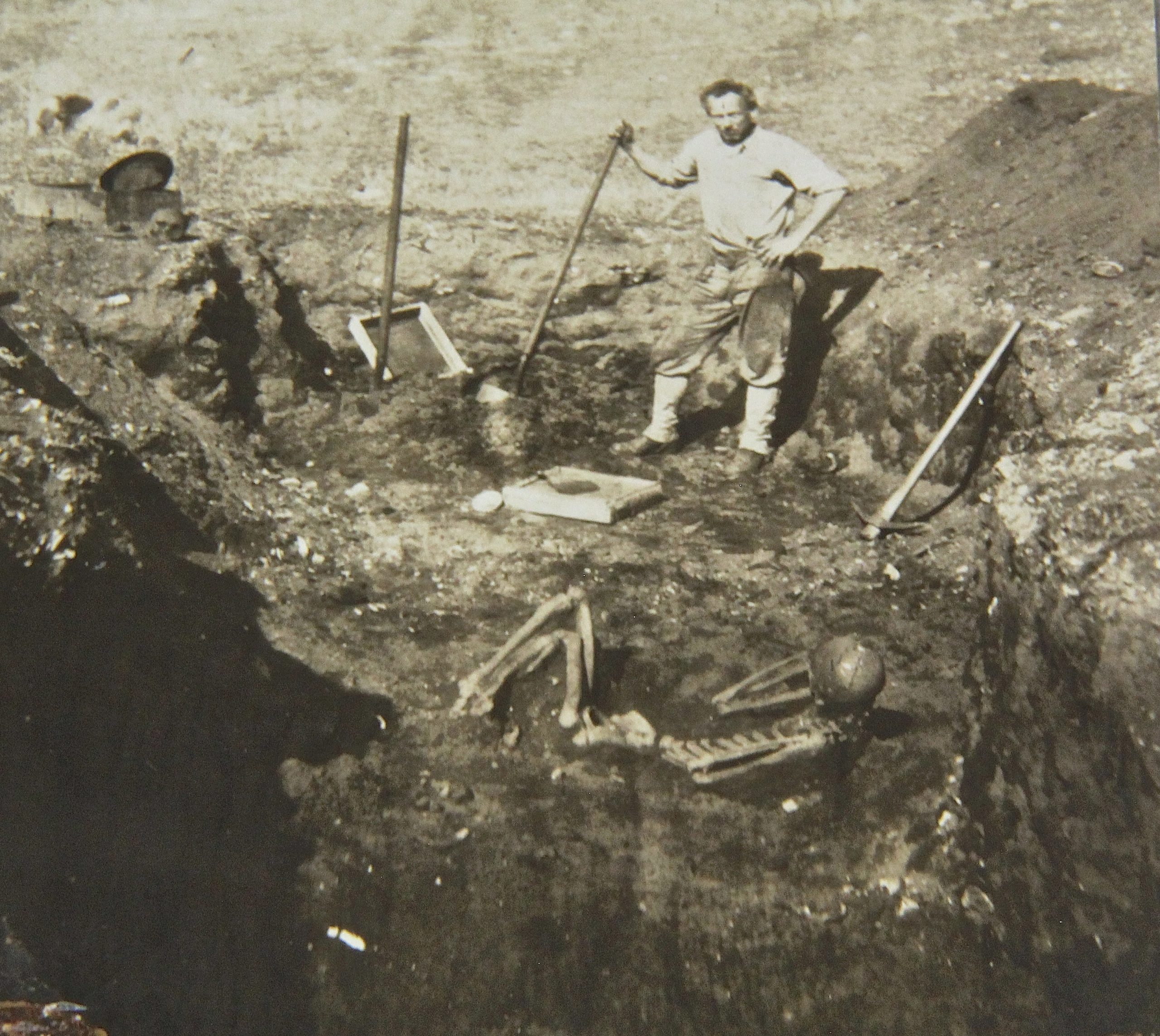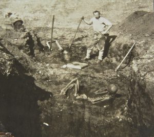 Newspaper reports of giants from the 1800s fill whole books (left). Some are clearly sensational and exaggerated. But others are well researched and credible. Moreover, many native American tribes have legends of bearded giants that were known to their ancestors. For example, the Paiutes recount stories of a race of cannibalistic, red-haired giants, the “Saiduka.” The Paiute tribes became vexed with these giants capturing their villagers and so they put together a coalition and started a war. The legend says that the Indians, after a long struggle, trapped the remaining Saiduka in Lovelock Cave. When the giants refused to come out, the Paiutes piled brush in the cave mouth and set it aflame, annihilating them. A large assortment of Native American skeletons and artifacts have been recovered from this cave. Reports on these giant skeletons stood 8-10 ft tall. Above to the right is a picture of a giant that was unearthed from a mass cemetery on Catalina Island in CA. Excavations were done in the 1800s by amateur archaeologist Ralph Glidden, who is standing in the background. This giant is about 9 ft tall.