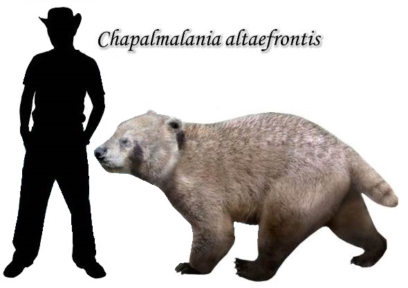 In his delightful book on fossil giants, Monumental Monsters, Vance Nelson demonstrates how creatures from all over the world have decline in size and diversity vs their ancient relatives. For example, the fossil raccoon Chapalmalania altaefrontis, would have dwarfed living raccoons. With its short tail and 5-foot body, it would have looked a bit like a giant panda bear. Pelorovis is an extinct genus of African cattle that resembled the Cape Buffalo, but sported a 10 ft horn spread! Above is pictured the skull of the giant hyena-like animal Dinocrocuta. This fossil monster would have weighed in at about 850 pounds, nearly four times the size of the largest modern hyenas.