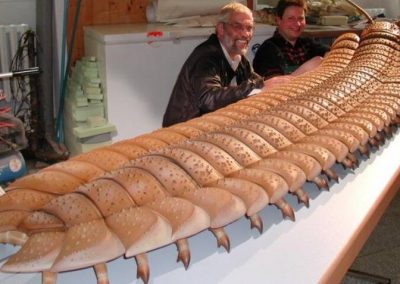 The largest mollusk today is the giant clam. They will grow to just over 4ft in length. But the bigges fossil bivalve found is Inoceramus steenstrupi. This massive clam grew up to 9 feet in length! Modern mayflies may sport a 10 inch wingspan at the most, but a primeval mayfly Bojophlebia prokopi had an 18 inch wingspan. A giant sand worm was discovered in Devon, England. These giant worms would have grown up to 3 feet long and 6 inches wide. Their large burrowing holes indicate that the creatures would have traveled beneath the surface, not unlike the modern earthworms used for fishing. But imagine using a worm this size!