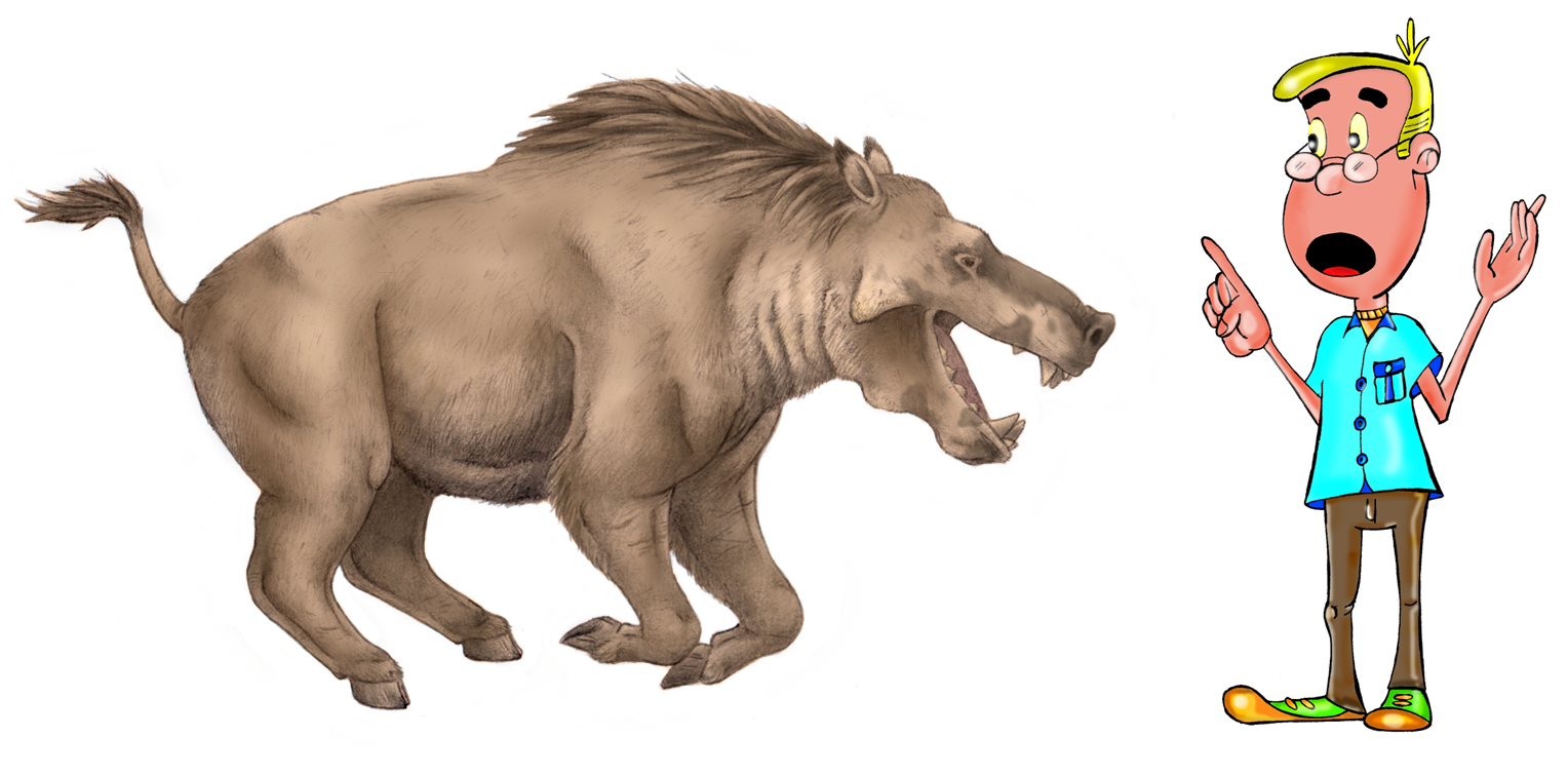 The Entelodont (left) is an extinct creature that has been called the “Terminator Pig” because of its size and ferocious appearance. Looking something like a massively overgrown warthog, the Terminator Pig would have weighed up to 2,000 pounds. But unlike today’s farm pigs that grow fat and lazy, the Entelodont would have been an omnivorous apex predator in the North American plains. There is some disagreement about exactly how to classify this beast.