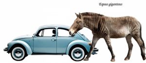 The conventional picture of horse evolution from a small deer-like ancestor to today’s large horses needs to be reevaluated. The largest horse in recorded history, a Shire gelding named Mammoth, was born in 1848 and eventually weighed 3,300 lbs. But the fossil horse Equus Giganteus, a huge zebra-like animal, would have weighed well over 3,500 pounds, much more than any modern zebra!