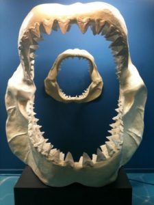Note to the right the skull of a fossilized bison with horns measuring 8 foot tip-to-tip. That’s twice today’s size! Next is a huge turtle skeleton exhibited at Yale’s Peabody Museum. It is 11 feet long and 15 feet wide. It would have weighed about 3 tons. Scientists in Spain found fossils of a mega-shrew that was capable of shooting venom out of blood-colored teeth. The researchers describe this extinct shrew, Dolinasorex glyphodon, as “giant” because it had a body mass of about 2 ounces, four times heavier than a modern water shrew. Massive deer, lemurs, kangaroo, and donkeys have all been found in the fossil record. Even an inch-long, Jurassic fossilized flea has been discovered that in China.