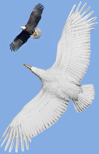 According to Guinness, the biggest hedgehog around today are the European hedgehog; and the largest on record is a porker that weighed just under 10 pounds. But the fossilized hedgehog known as Deinogalerix, which was discovered in Italy, was a huge hog that would have been 5 times the size of the European hedgehog. To the right is a comparison between a bald eagle and the giant Teratorn bird, Argentavis magnificens, with a wingspan of 25 ft (comparison after Campbell, Kenneth E., “The World’s Largest Flying Bird,” Terra, Natural History Museum of Los Angeles County, 1980.)