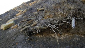 In 2009 Joel Barker of Ohio State University discovered another ancient forest found on Ellesmere Island, which lies north of the Arctic Circle in Canada. It contained dried-out birch, larch, spruce, and pine trees. “About a dozen such frozen forests exist in the Canadian Arctic, but the newest site is the farthest north.” (Chang, Alicia, “Mummified Forest Reveals Climate Change Clues,” Huffington Post, December 16, 2010.) See picture to the right.