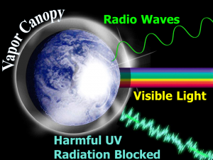Some creationists emphasize other factors that may have caused the worldwide temperate conditions that existed before the Flood. They stress the evidence of far greater concentrations of carbon dioxide levels in the past and point out that the earth’s magnetic field was far stronger than today. This could have acted as the shield for cosmic radiation and produced the healthier environment. (Humphreys, Russel D., Starlight and Time, 1995, p. 63.) Creationist John Baumgardner suggested that the atmosphere surrounding the original earth was far thicker than it is today and that the exploding of the fountains of the great deep during the initial stages of the Genesis Flood stripped some of that original atmosphere away. Certain Bible scholars cite the language of the Psalm 148:4 as evidence against a vapor canopy. If the canopy had collapsed during the flood, they reason, why does the Psalmist still reference the waters above the firmament? But this poetic allusion could hark back to the original creation, or it could refer to some of the original water vapor (left over from the canopy) still in the outer reaches of our atmosphere. Computer modeling of a vapor canopy have shown that it is extremely effective as a thermal blanket, causing global warming. In fact, a canopy of significant size would result in extreme temperatures on Earth. This is a matter of ongoing creationist climate research.