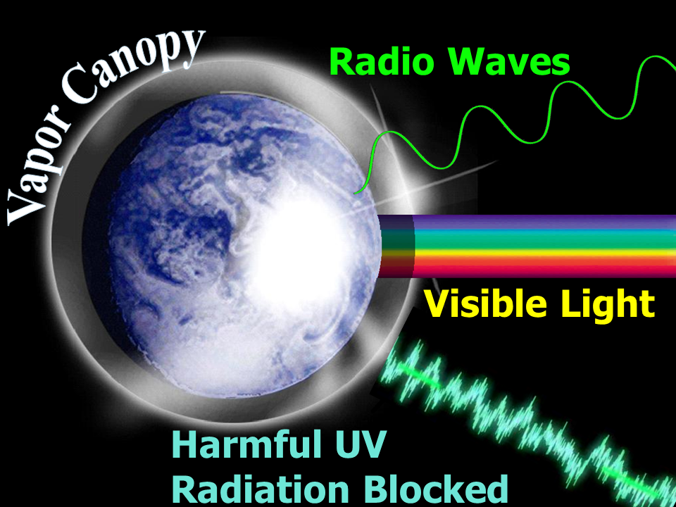 The water vapor canopy hypothesis would neatly explain yet another observed anomaly…too much water in Earth’s upper atmosphere. NASA satellites have confirmed far more hydroxyl in the hydrosphere than current models predict. The parent molecule of hydroxyl (OH) is water (H2O). Because ultraviolet radiation from the sun breaks down water in Earth’s upper atmosphere into hydroxyl and hydrogen, a large amount of water must have previously existed. Some have proposed a constant influx of mini-comets as a source for the mysterious water, but that theory has been strongly criticized as unworkable. (Matthews, Robert, New Scientist, July, 1997, pp. 26-27.)